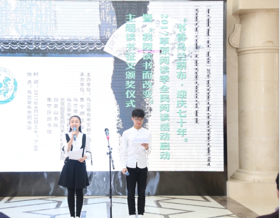 为贯彻落实党中央以及自治区党委、政府有关倡导和开展阅读活动战略部署,积极响应习近平总书记“爱读书,读好书,善读书”号召,根据内蒙古自治区新闻出版广电局《关于做好4.23“书香内蒙古 .迎庆七十年”2017草原阅读季活动启动仪式的通知》的统一部署,我市于4月23日上午在市图书馆隆重举办了“书香乌兰察布·迎庆七十年”2017草原阅读季活动启动仪式暨“我因读书而改变”主题读书征文颁奖活动。